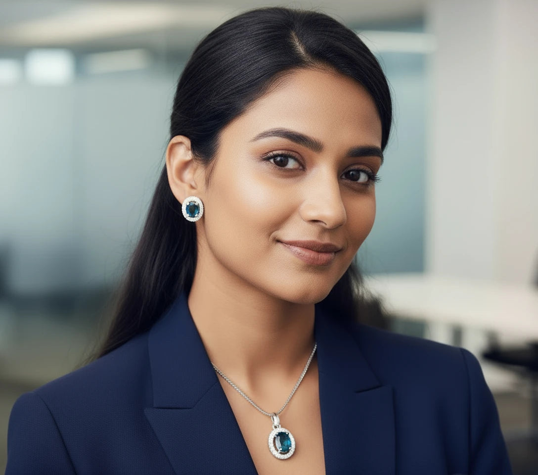 Elevate your style with this stunning oval pendant jewelry set, crafted from radiant silver and vibrant blue accents. Perfect for any occasion, it gracefully enhances your outfit while showcasing your unique taste. This luxurious ensemble is a timeless addition that makes a memorable statement.