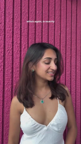 Emerald Silver Oval Pendant Set
